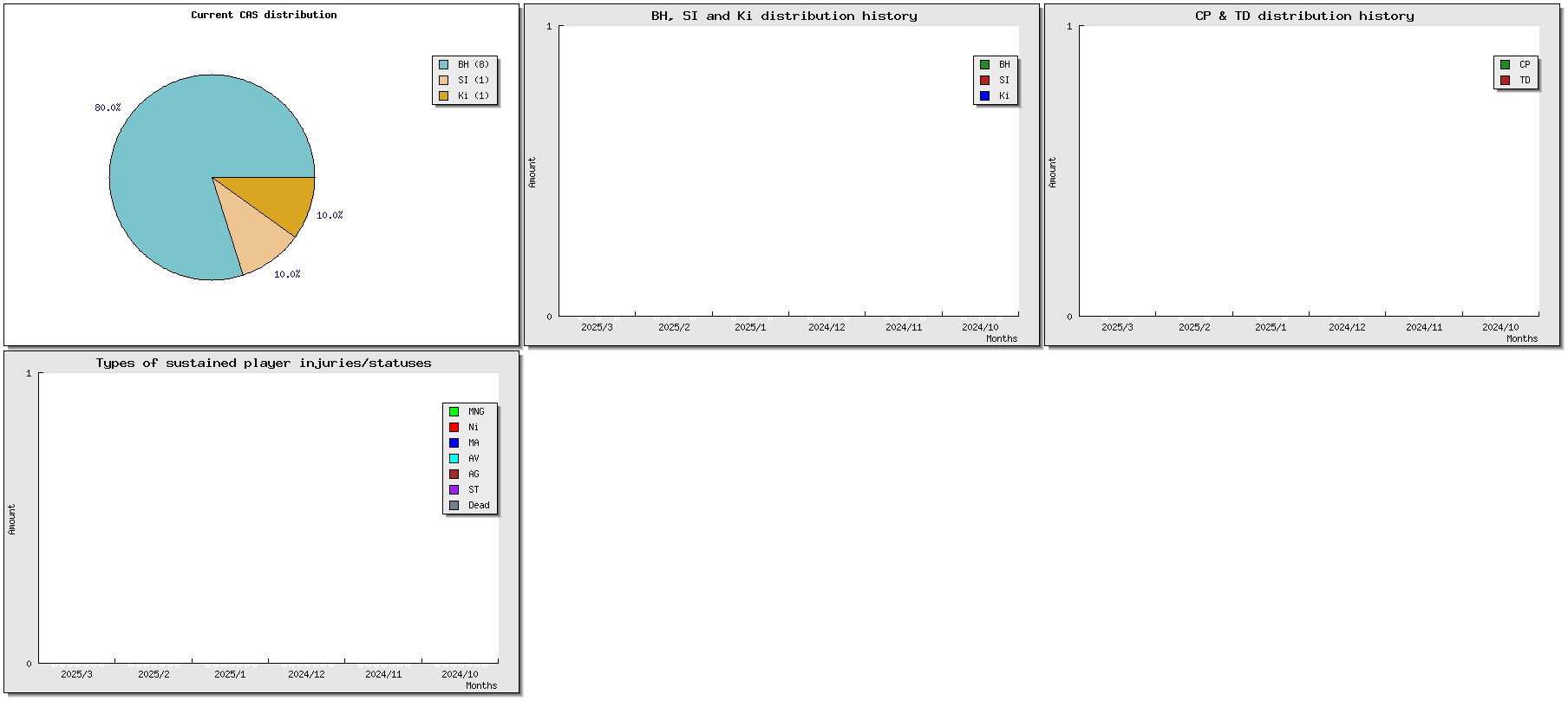 | Injuries | Tournament | Opponent | MVP | Cp | Td | Int | Cas | Score | Result | Date played | Match |