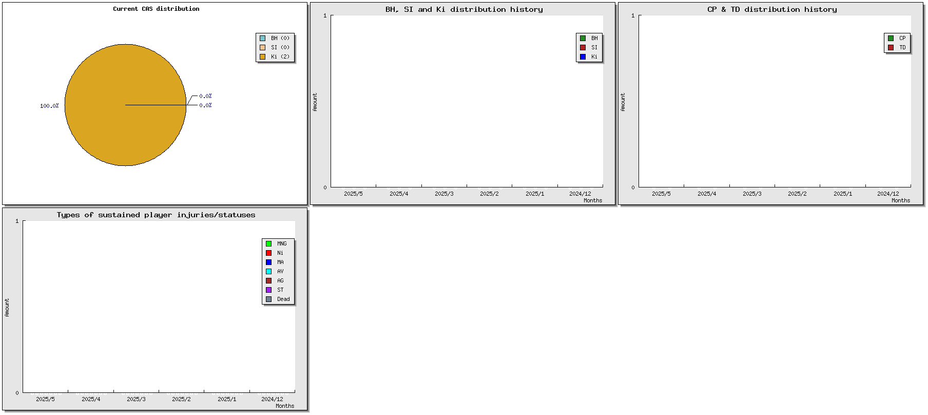 | Injuries | Tournament | Opponent | MVP | Cp | Td | Int | Cas | Score | Result | Date played | Match |