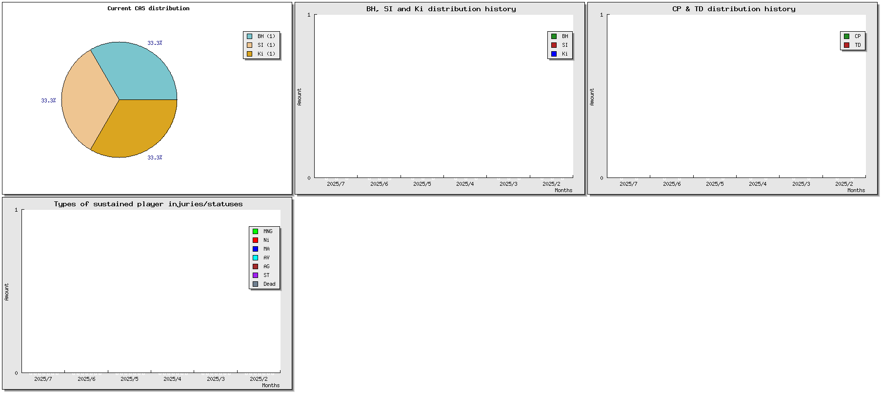 | Injuries | Tournament | Opponent | MVP | Cp | Td | Int | Cas | Score | Result | Date played | Match |