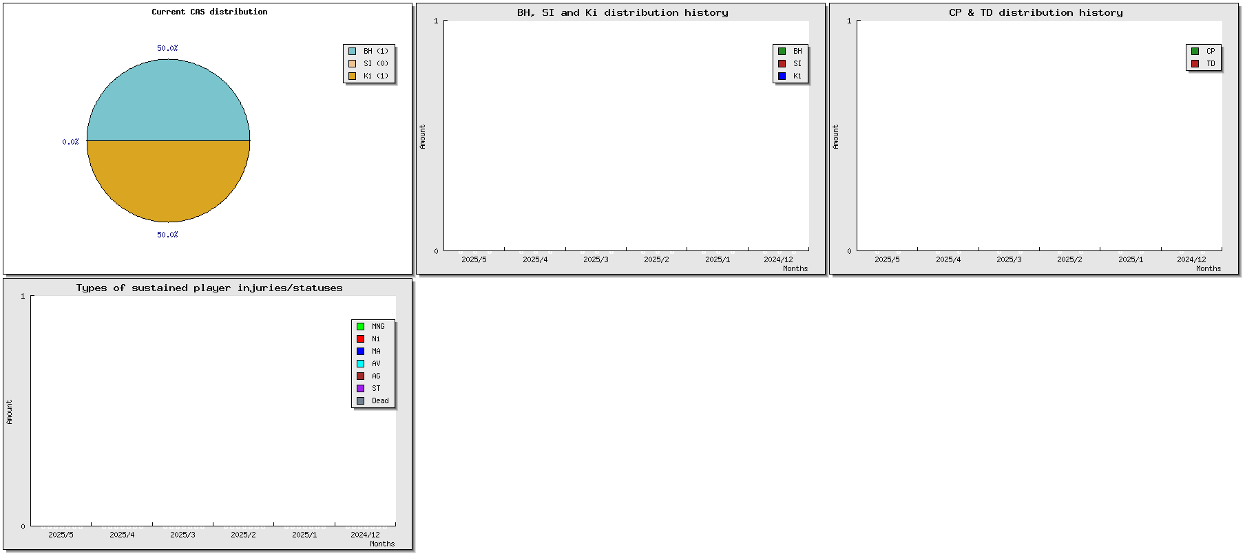 | Injuries | Tournament | Opponent | MVP | Cp | Td | Int | Cas | Score | Result | Date played | Match |