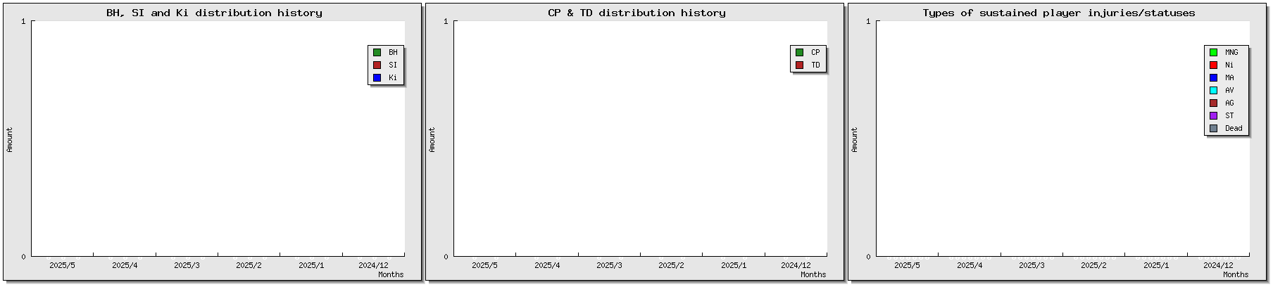 | Injuries | Tournament | Opponent | MVP | Cp | Td | Int | Cas | Score | Result | Date played | Match |