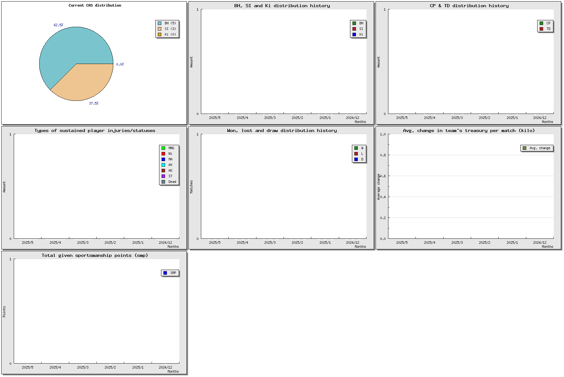 | # | Name | Position | Ma | St | Ag | Av | Skills | Injuries | Cp | Td | Int | BH/SI/Ki | MVP | SPP/extra | Value | ||