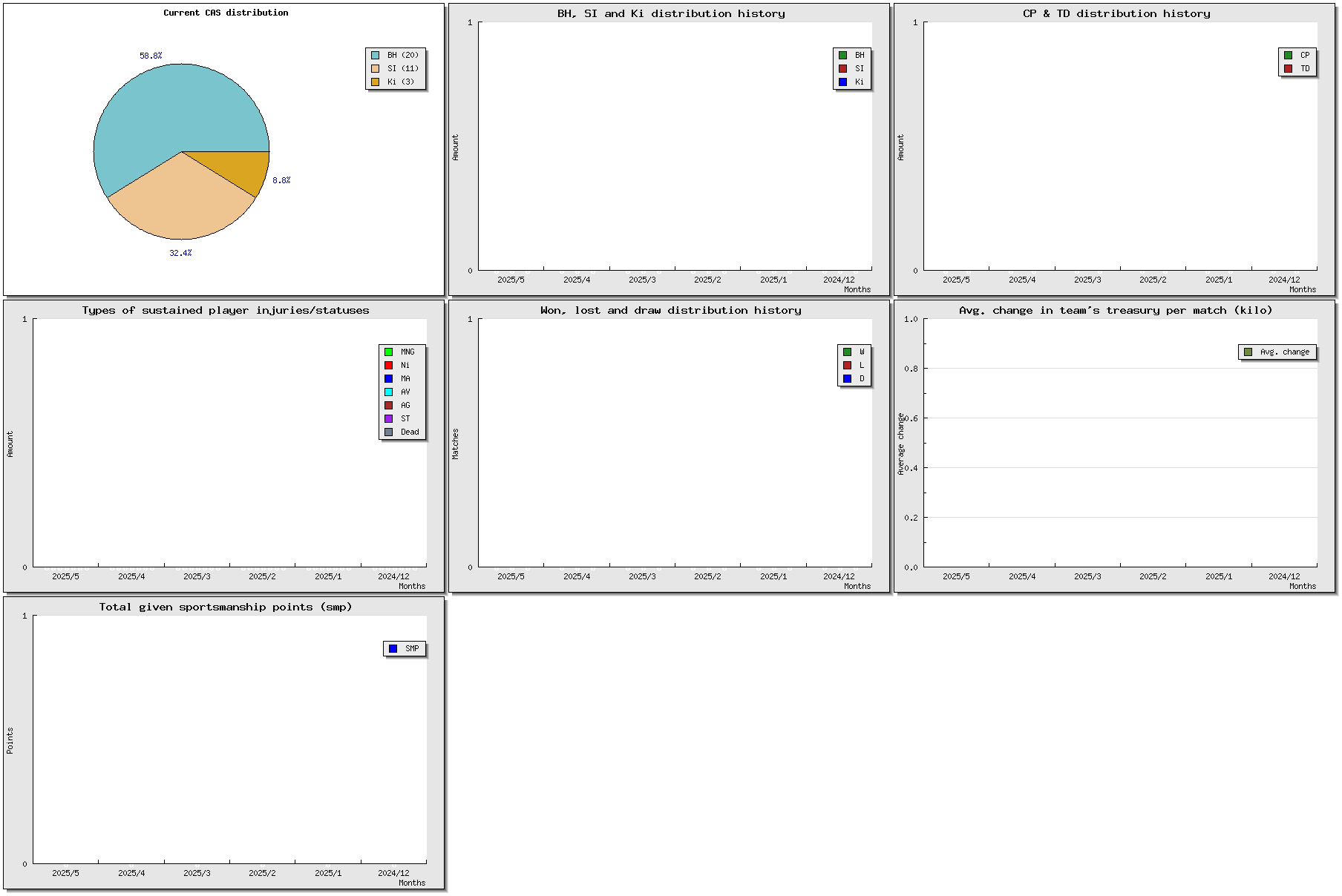 | # | Name | Position | Ma | St | Ag | Av | Skills | Injuries | Cp | Td | Int | BH/SI/Ki | MVP | SPP/extra | Value |