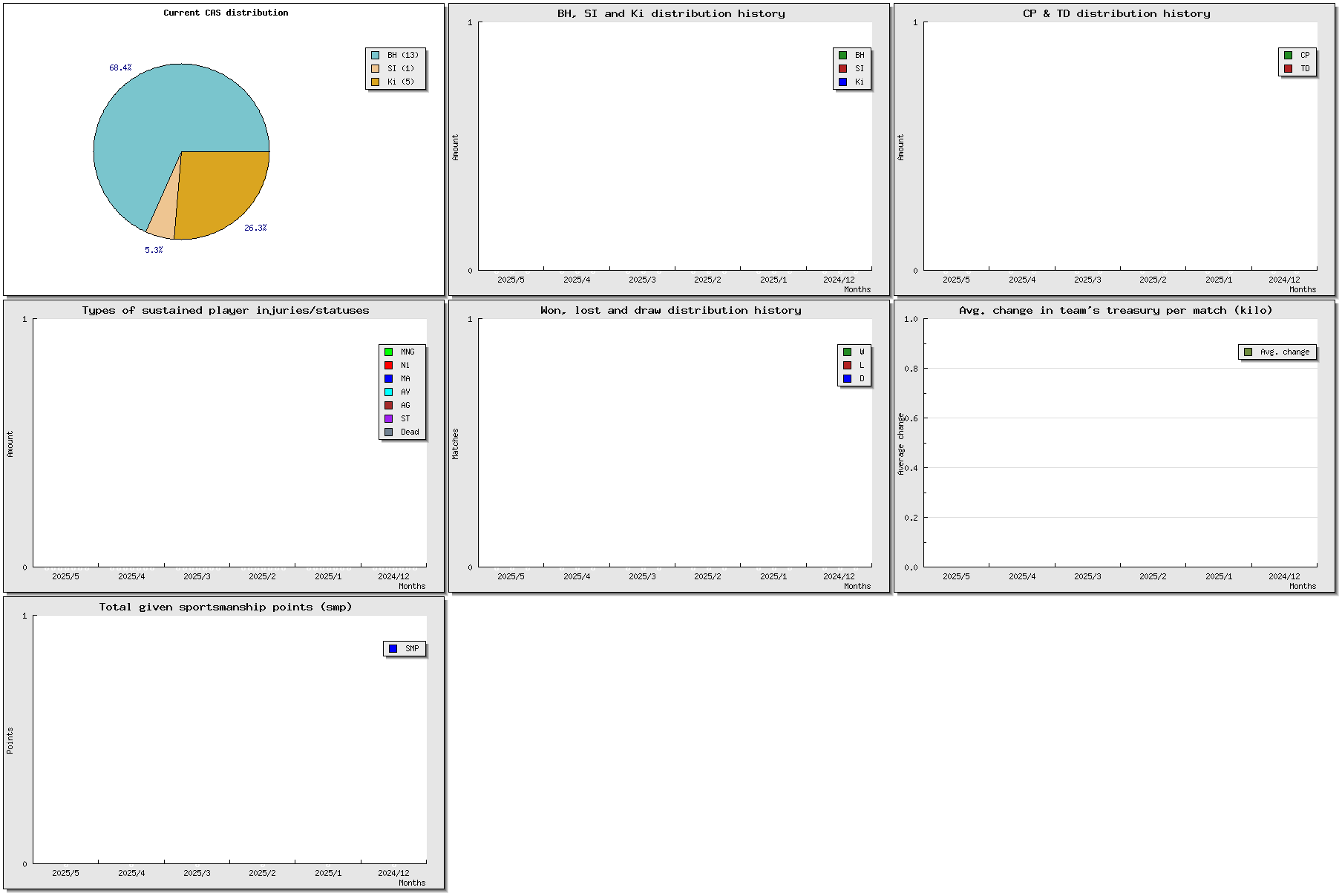 | # | Name | Position | Ma | St | Ag | Av | Skills | Injuries | Cp | Td | Int | Cas | MVP | SPP | Value |