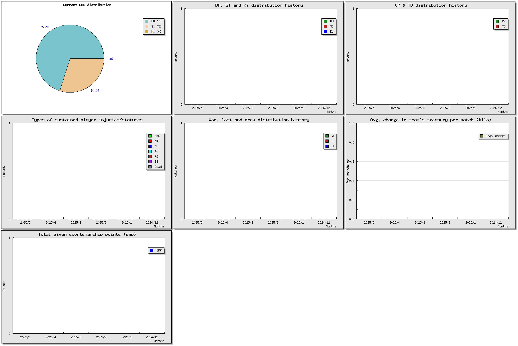| # | Name | Position | Ma | St | Ag | Av | Skills | Injuries | Cp | Td | Int | Cas | MVP | SPP | Value |