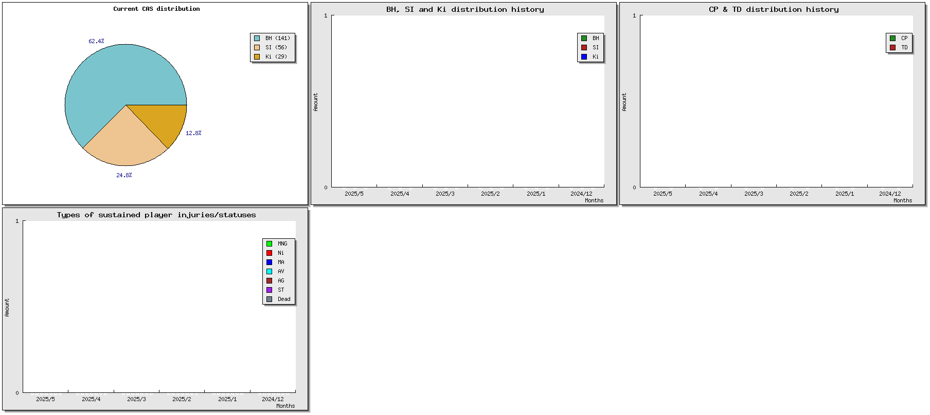 | # | Name | Race | Value | W | D | L | GP | WIN% | SW | SD | SL | GF | GA | Td | Cp | Int | Cas | BH | Si | Ki | tcasf | tcasa | tcdiff | SMP | WT | ELO |