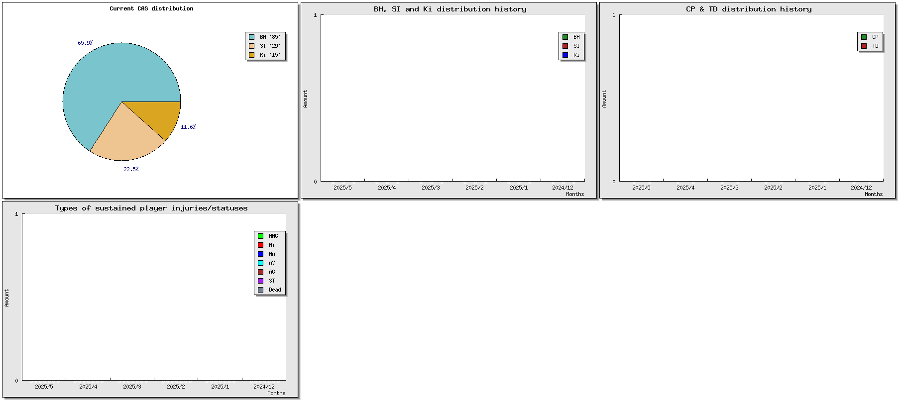| # | Name | Race | Value | W | D | L | GP | WIN% | SW | SD | SL | GF | GA | Td | Cp | Int | Cas | BH | Si | Ki | tcasf | tcasa | tcdiff | SMP | WT | ELO |