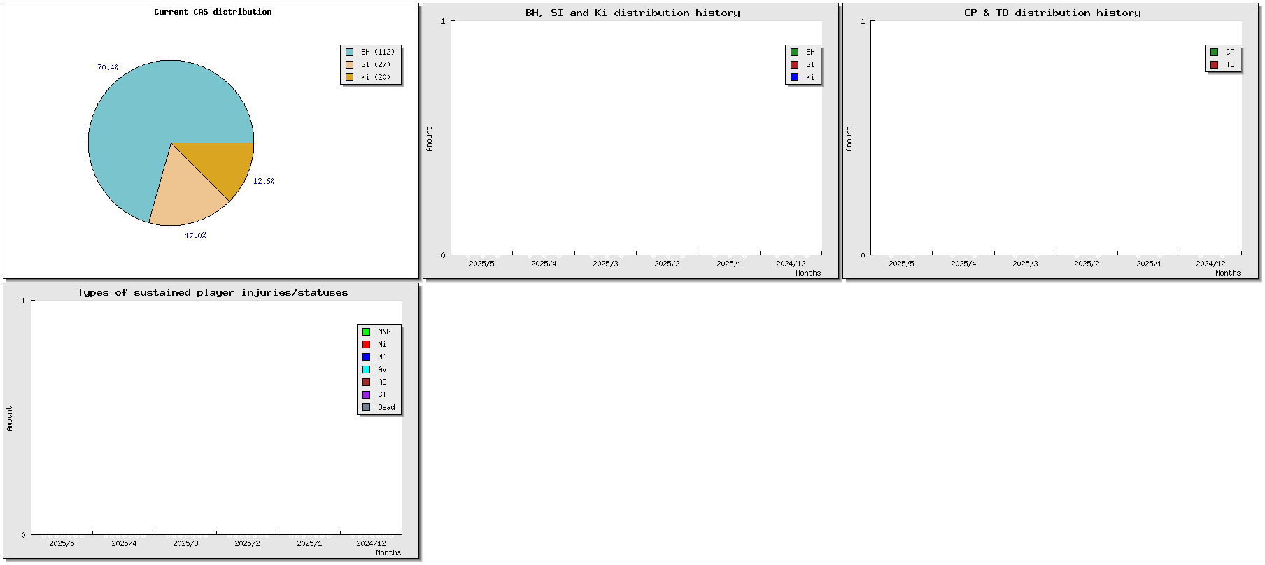 | # | Name | Race | Value | W | D | L | GP | WIN% | SW | SD | SL | GF | GA | Td | Cp | Int | Cas | BH | Si | Ki | tcasf | tcasa | tcdiff | SMP | WT | ELO |