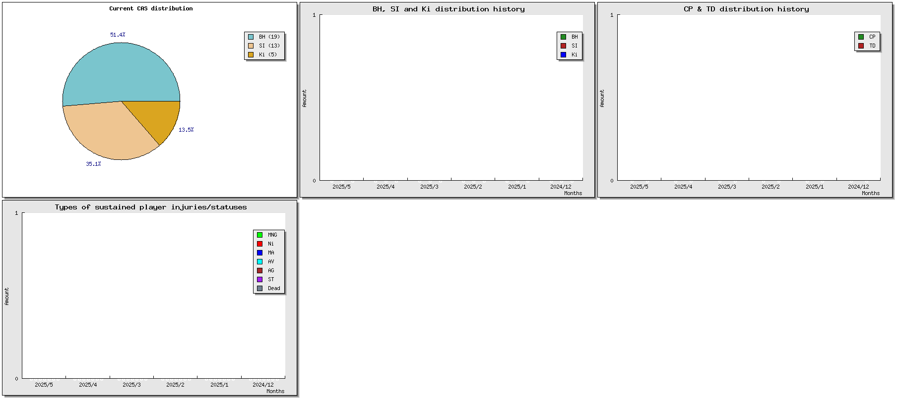 | # | Name | Race | Value | W | D | L | GP | WIN% | SW | SD | SL | GF | GA | Td | Cp | Int | Cas | BH | Si | Ki | tcasf | tcasa | tcdiff | SMP | WT | ELO |