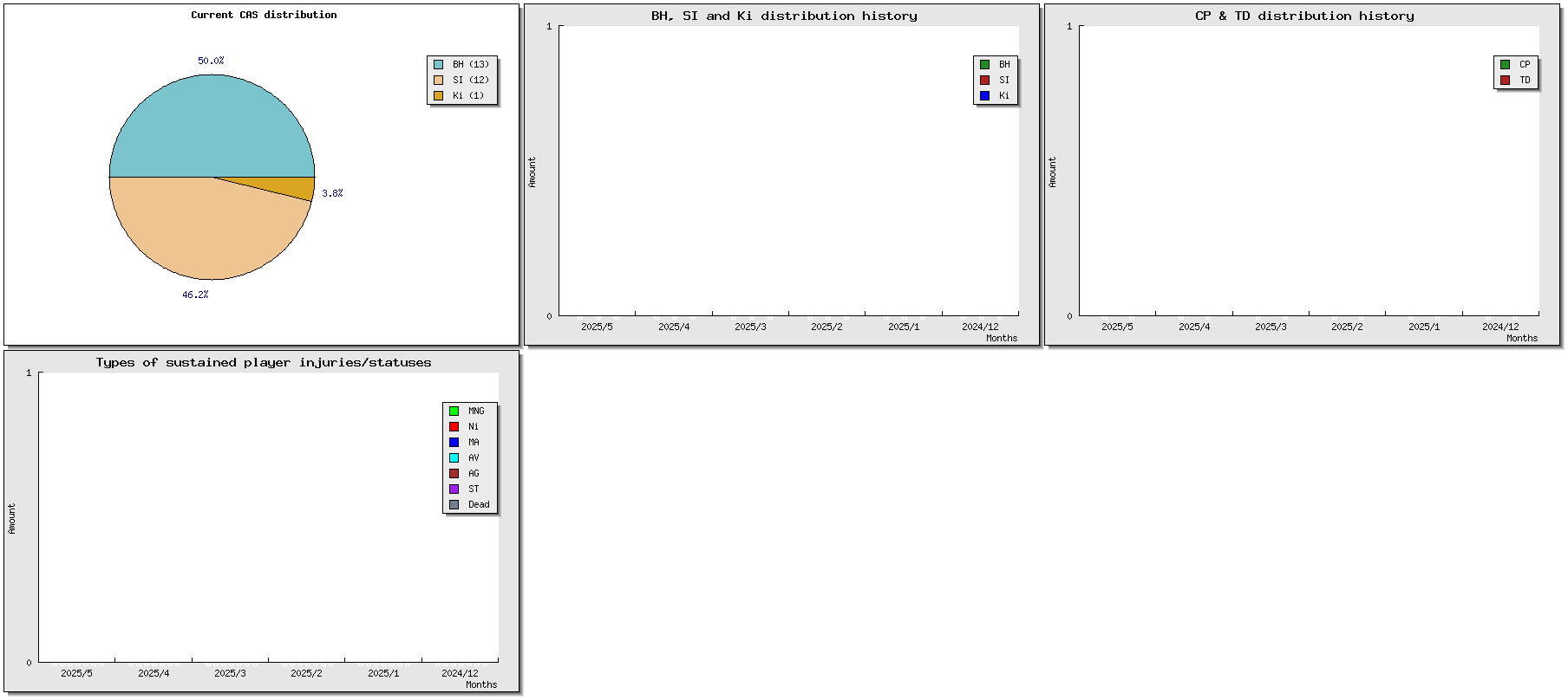 | # | Name | Race | Value | W | D | L | GP | WIN% | SW | SD | SL | GF* | GA* | Td* | Cp* | Int* | Cas* | BH* | Si* | Ki* | tcasf* | tcasa* | tcdiff* | SMP* | WT | ELO |